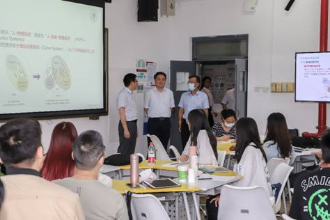 王稼琼走进研究生课程《制造系统仿真与数学孪生》和《服务营销》课堂,利用课间与师生亲切交流互动。王稼琼详细了解了新生的生源情况、在校学习生活情况及教师的教学准备、课程内容、教学计划等情况,对教师为课程所做的精心准备和付出表示赞许和感谢,对正在上课的师生们表达关心和问候,并鼓励同学们继续努力深造、学有所成。