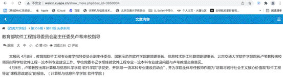 以专业导论课为重点,在全国范围内进行课程思政建设的交流和推广活动,课程负责人卢苇教授在软件工程专业教育年会、计算机教育大会等各种会议,以及山东大学、电子科技大学、吉林大学、南京航空航天大学、西南大学、天津科技大学、长沙理工大学、广西师范大学、河南师范大学等高校做特色化示范性软件学院建设和特色化软件人才培养报告及课程思政建设报告12场。接待了北京航空航天大学、北京理工大学、西安电子科技大学、西北工业大学、中国地质大学、天津大学、四川大学、吉林大学、西南大学、北京工商大学、北京信息科技大学、西安邮电大学、天津工业大学、辽宁工业大学、辽宁石油化工大学、桂林理工大学16所高校的来访交流学习。