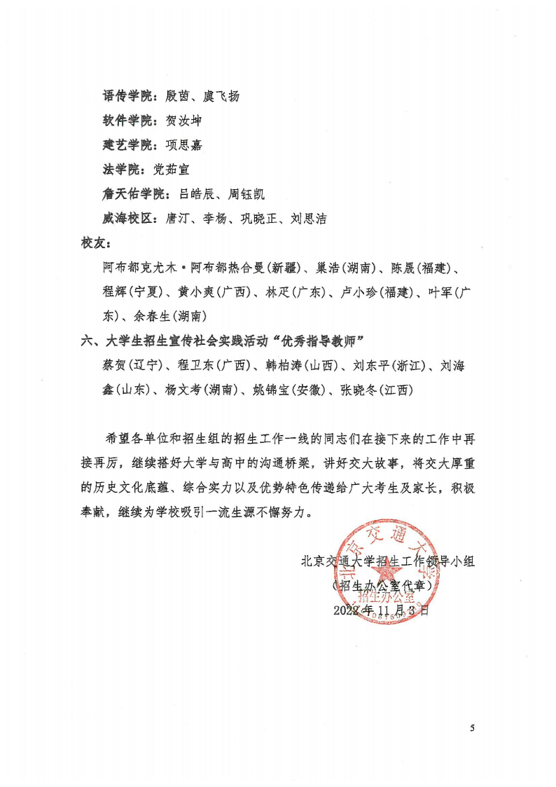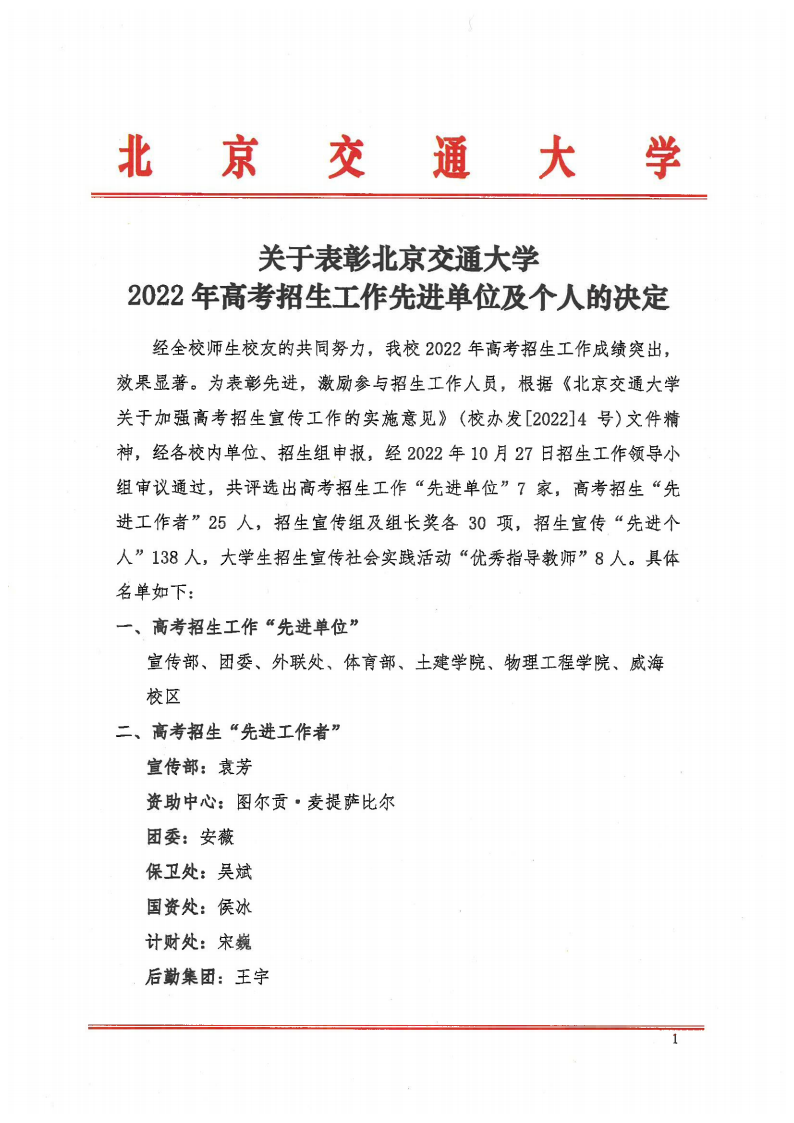 附件:《关于表彰北京交通大学2022年高考招生工作先进单位及个人的决定》