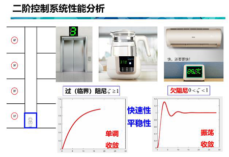 切入点:从阻尼比的不同取值来分析阻尼比对二阶控制系统动态性能的影响,在稳定性的前提下,控制系统追求快速性和平稳性。阻尼比大于1时为过阻尼状态,系统单调收敛,响应速度较慢,阻尼比在0-1范围时为欠阻尼状态,系统震荡收敛,动态性能兼顾快速性和平稳性,尤其是阻尼比0.707为最佳工程参数。引出问题:欠阻尼状态对所有控制系统都适用吗?以日常生活中最常见的电梯为例,对电梯而言,平稳性是首要需求,不允许振荡的发生,欠阻尼状态不适合电梯控制系统。